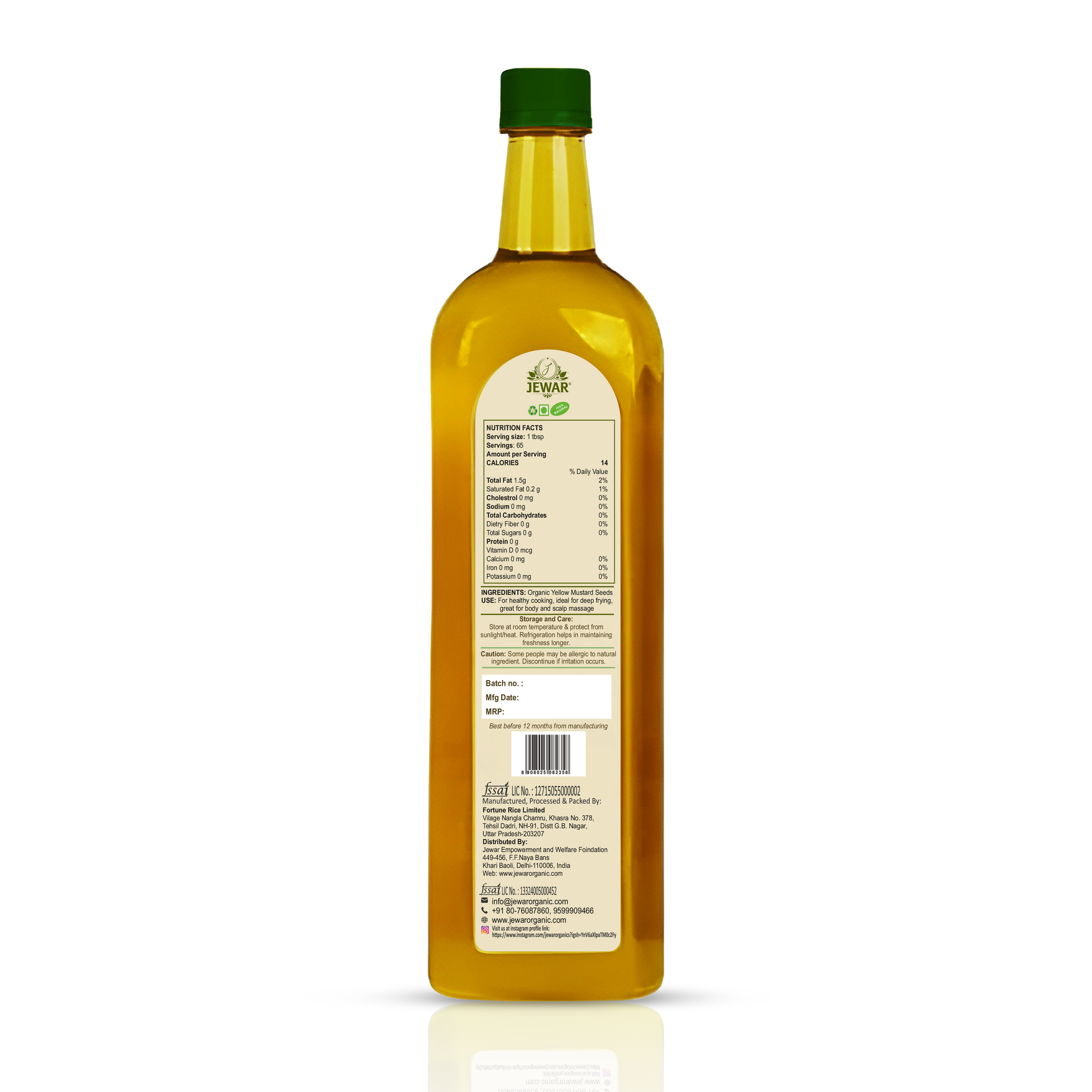 Jewar Organic Wood Cold Pressed Yellow Mustard Oil is crafted using the traditional Kachi Ghani method, where mustard seeds are slowly pressed in wooden kolhus to retain their natural aroma, nutrients, and flavor. This unrefined, pure, and chemical-free oil is packed with omega-3, vitamin E, and antioxidants, making it a healthy choice for daily cooking. With its strong taste and natural pungency, this mustard oil enhances curries, pickles, tadkas, and Ayurvedic remedies. Proudly made in India, Jewar Organic ensures every drop of oil is lab-tested, pure, and authentic – bringing the goodness of nature directly to your kitchen.
